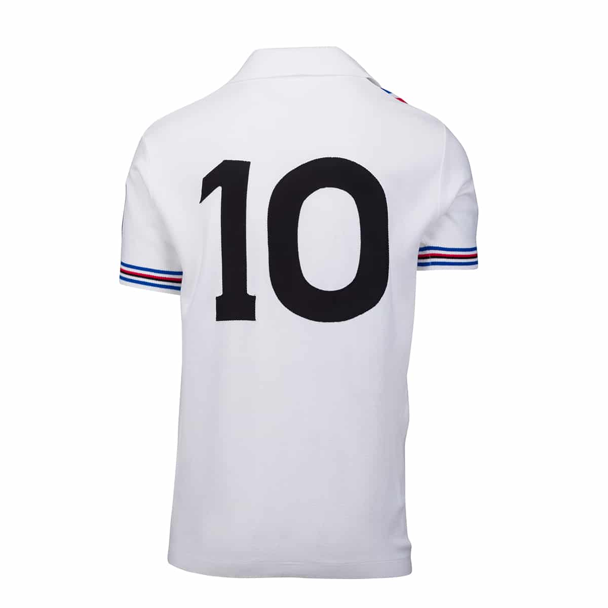 Il numero 10 cucito sul retro rimanda all'eredità di grandi campioni che hanno indossato questa maglia nelle trasferte europee e nazionali. Il logo del club sulla manica sinistra completa un design che riflette gli standard qualitativi e l'eleganza stilistica degli anni Ottanta.